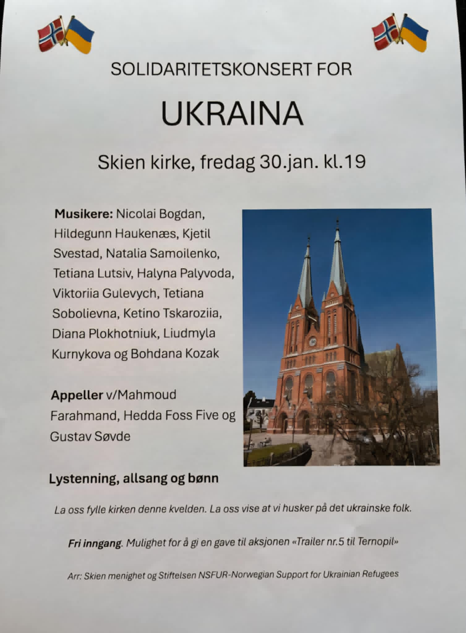 Solidaritetskonsert i Skien kirke fredag 31. januar kl. 19.00.