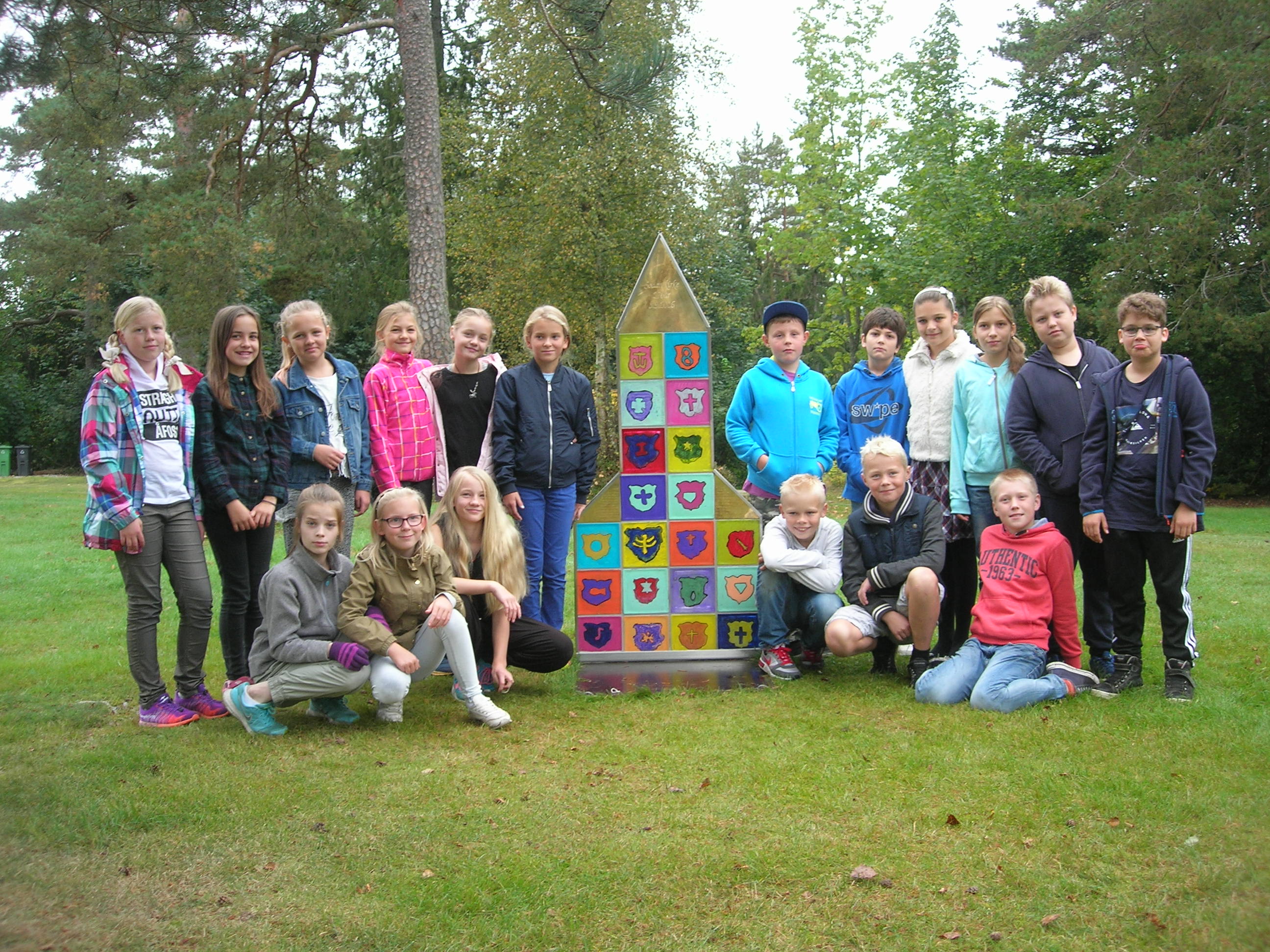 I anledning 250-års jubileet ønsket menigheten et samarbeid med Åfoss skole for å lage et varig minne om jubileumet. Skolen var svært positiv til initiativet. I våres var 20 barn på femte trinn på besøk i kirka og ble kjent med den flotte kunsten som er der. Deretter malte de på glassbyggestein og det ble satt sammen til en fasade som liknet på inngangsportalen til Solum kirke. Steinene ble murt sammen og messingplater med inngravert anledning og navnene på alle som deltok ble montert på. Det hele ble avduket av skolebarna under den historiske dagen i jubileumsuka, og vi er alle veldig stolte av resultatet.